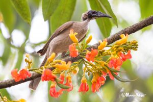 Helmeted Brown and Flowers